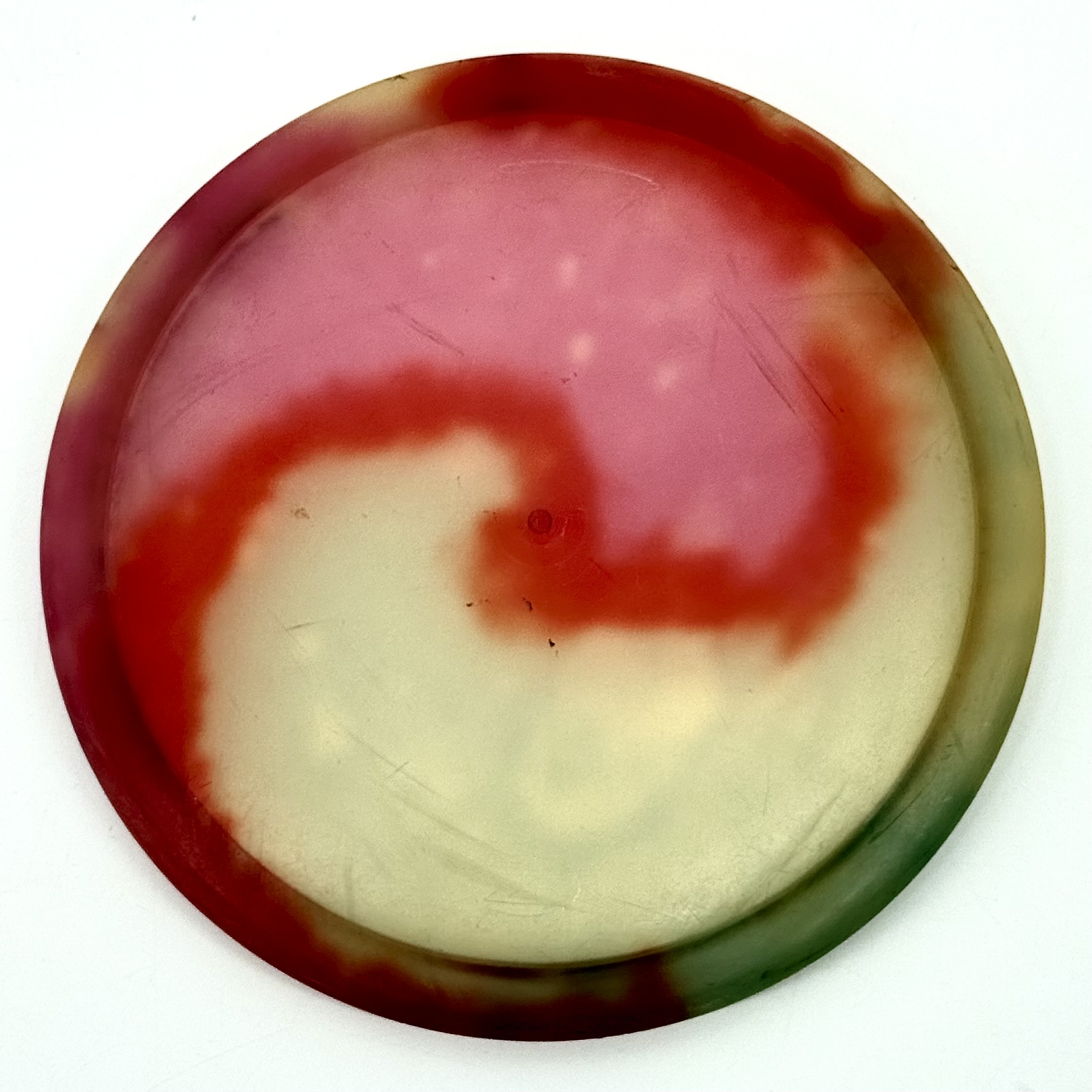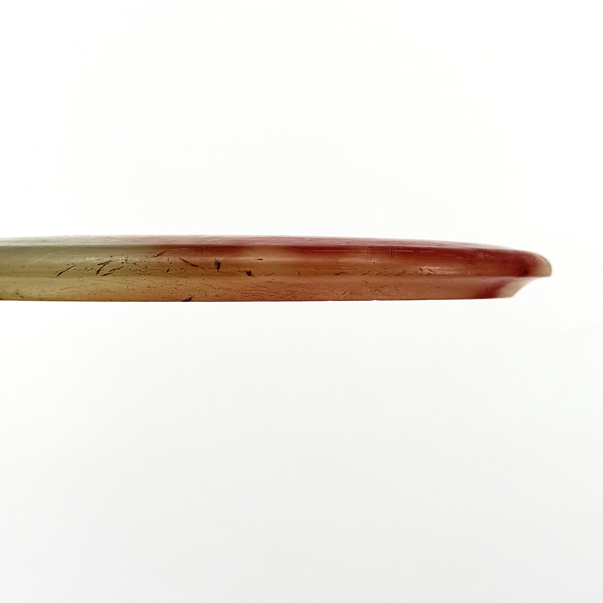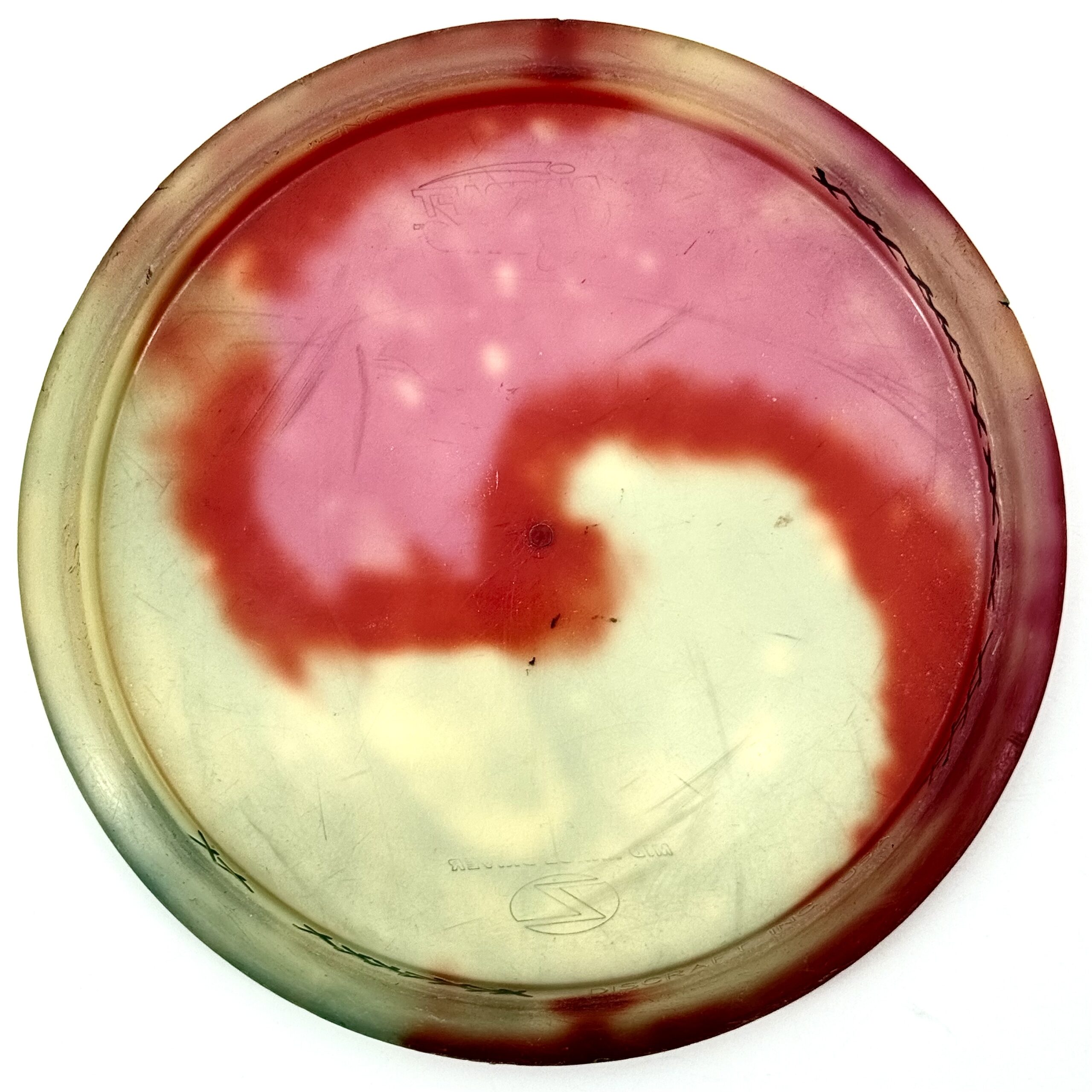 Tyydyttävä+ = tasaista kulumaa, voi olla pientä vekkiä ja naarmuja, mutta edelleen käypä kiekko.