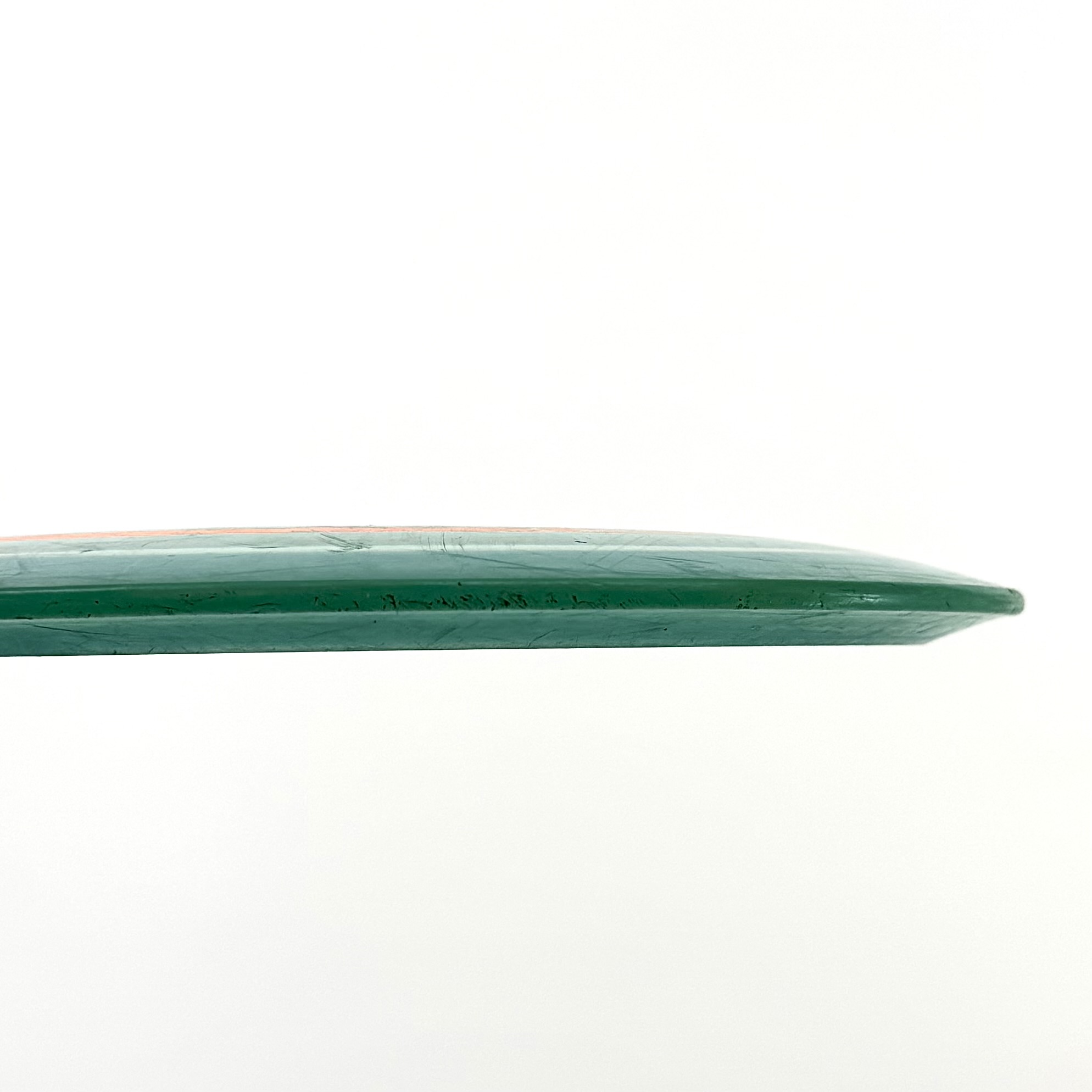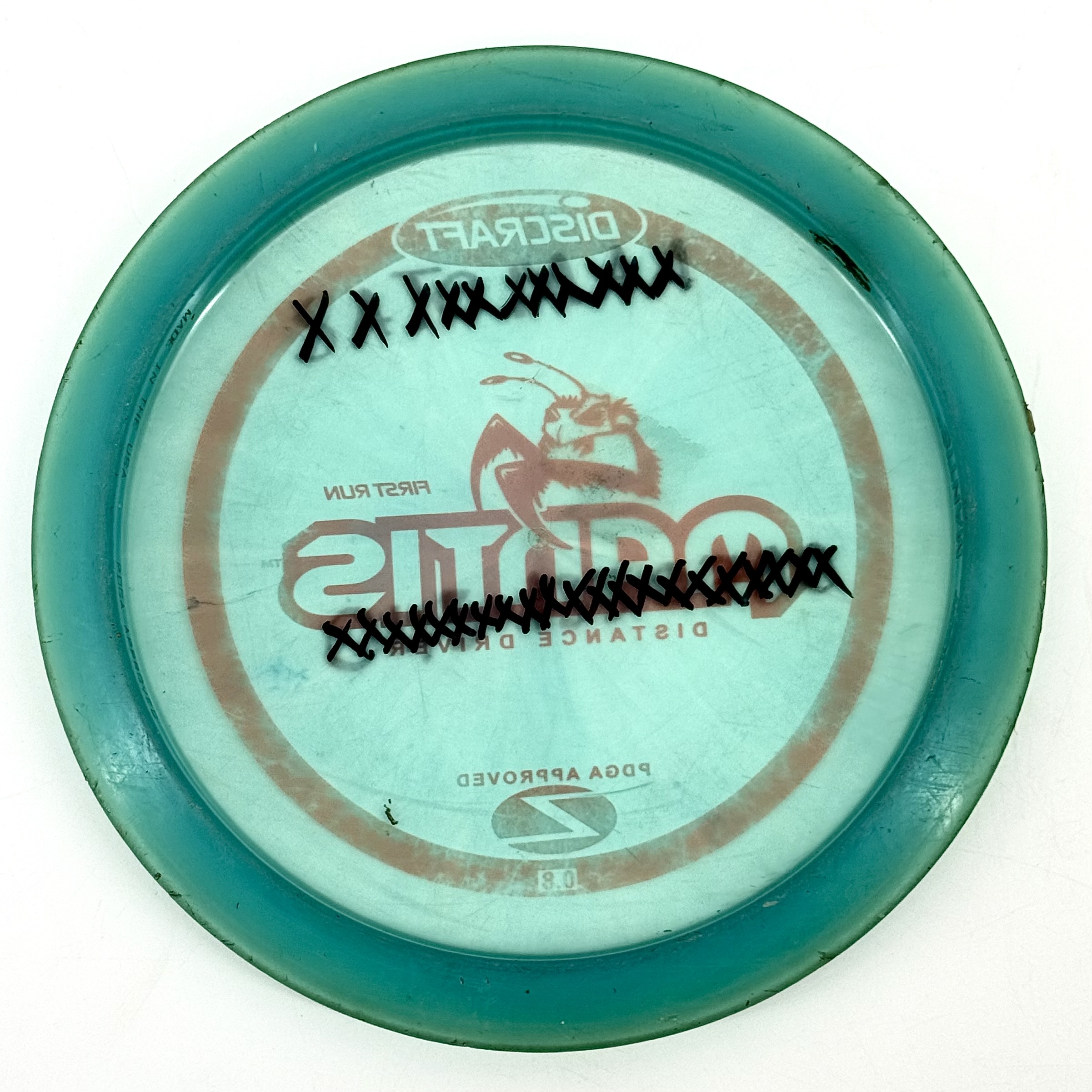 Hyvä = kymmeniä kertoja heitetty kiekko, ollut siis jo jossain määrin aktiivikäytössä radalla tai treeneissä. Normaaleja käytön jälkiä mutta ei yhtään isompaa tai syvempää naarmua tai kolosta.